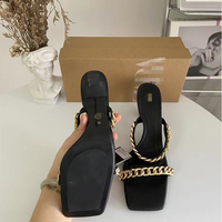 Za 2024 Summer New High Heels Metal Chain Glitter Line Open Toe High Heel Slippers Square Head High Pumps Sandals for Women